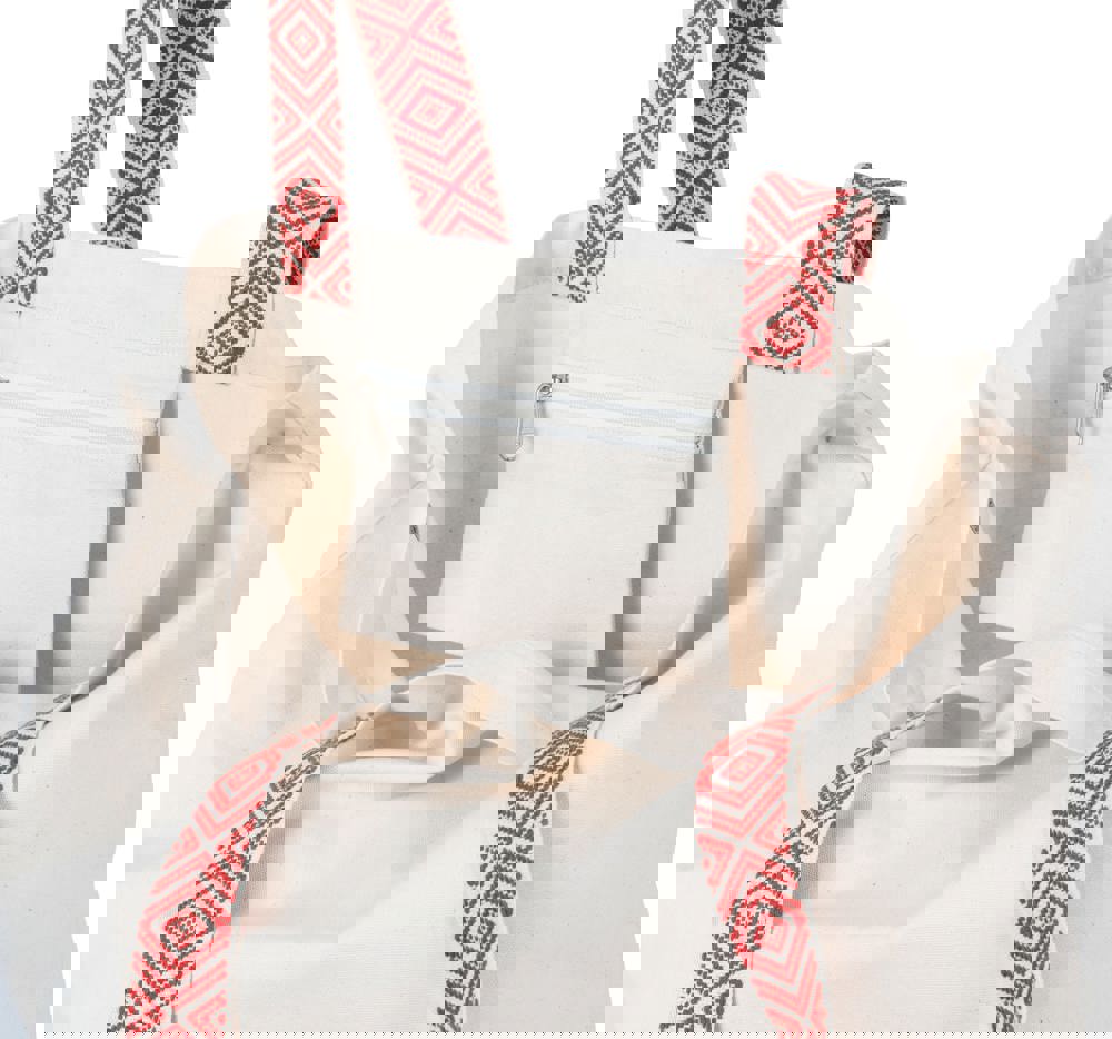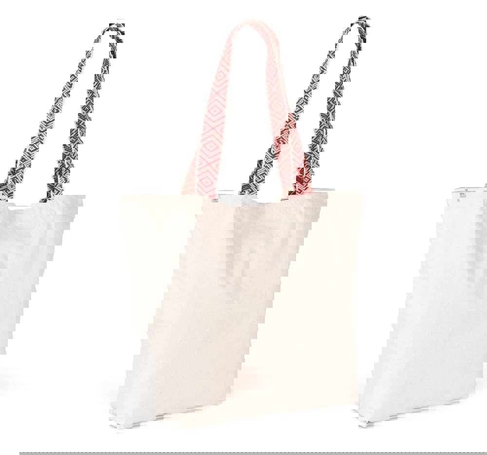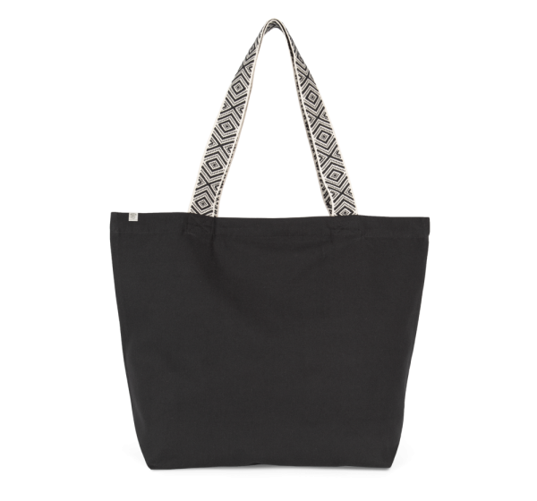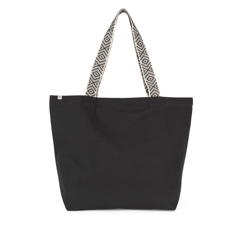 Black Night 285 g/m canvas : 67% cotone riciclato / 30% poliestere riciclato / 3% altre fibre. I manici in colori a contrasto presentano una grafica di ispirazione etnica e misurano cm 60 in lunghezza e cm 4,25 in larghezza.