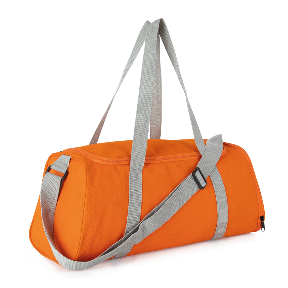 100% poliestere. Borsa sportiva con ampia apertura superiore e chiusura lampo bidirezionale. Tasca laterale con cerniera e sacca interna per le scarpe. Manici a nastro cuciti sul corpo della borsa. Tracolla regolabile.