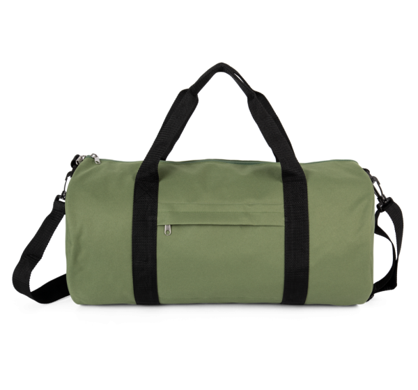 100% Poliestere 600D. Borsa tubolare in 50% poliestere riciclato. Tasca frontale con cerniera. Tracolla regolabile.