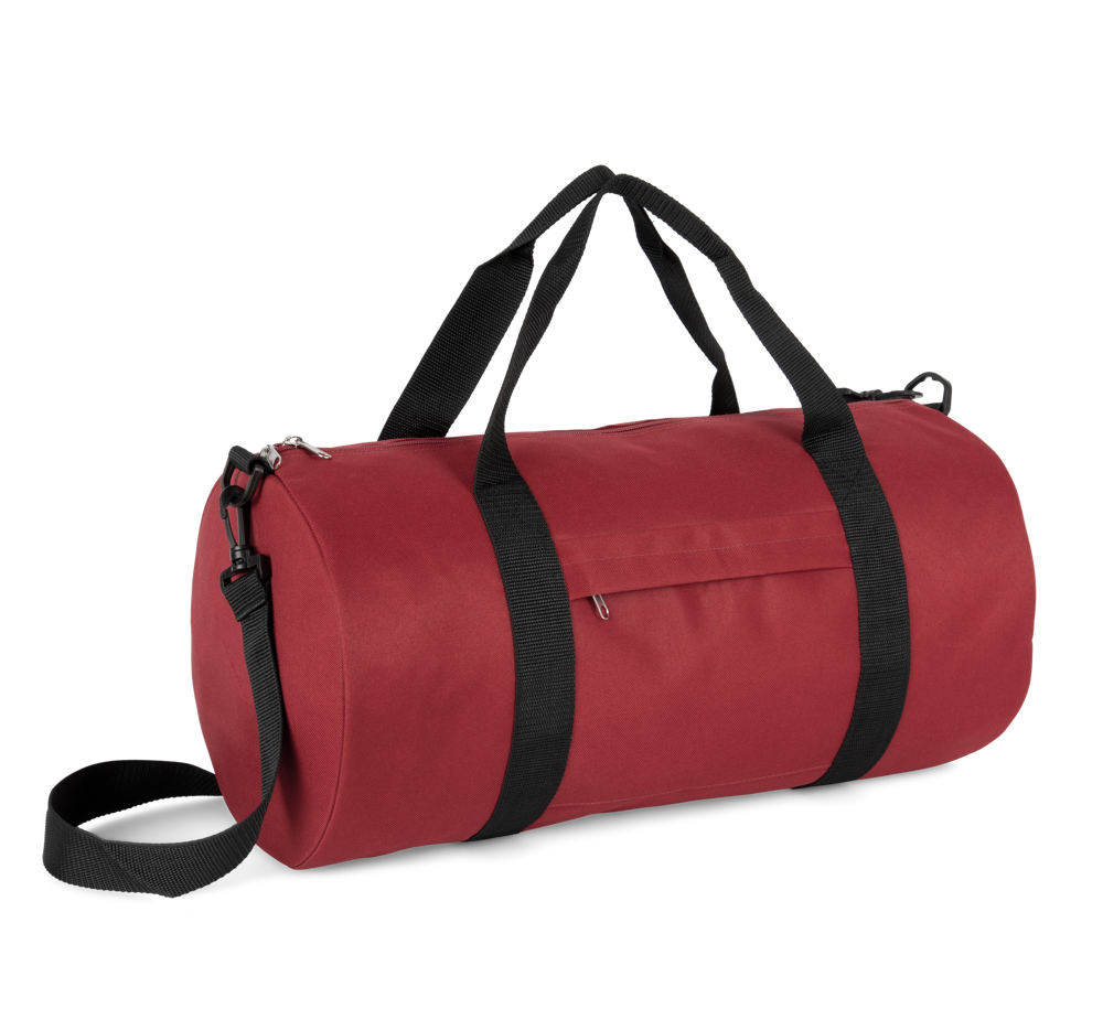 100% Poliestere 600D. Borsa tubolare in 50% poliestere riciclato. Tasca frontale con cerniera. Tracolla regolabile.