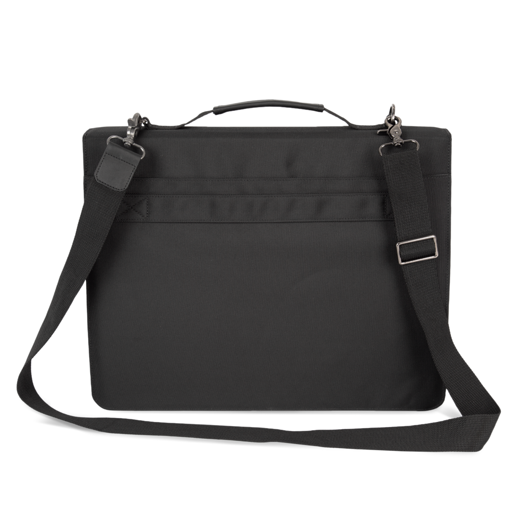 100% poliestere riciclato. Borsa portadocumenti da lavoro semi-rigida. Scomparto interno a doppio soffietto con divisorio per i documenti. Tracolla regolabile e staccabile. Tasca posteriore con nastro a strappo per fissare la borsa a un trolley. KIALMA è la collezione K-loop di borse e accessori di fascia alta. I prodotti K-loop contengono dei traccianti nel filato e, grazie alla tecnologia blockchain, consentono di tracciare l'intera filiera produttiva. Un'etichetta speciale con un codice QR consente l'accesso alla piattaforma Aware™ e l'autenticazione diretta delle certificazioni con un semplice smartphone.