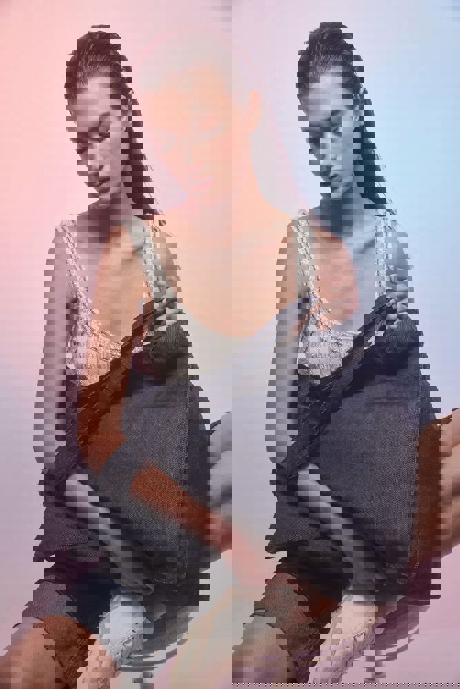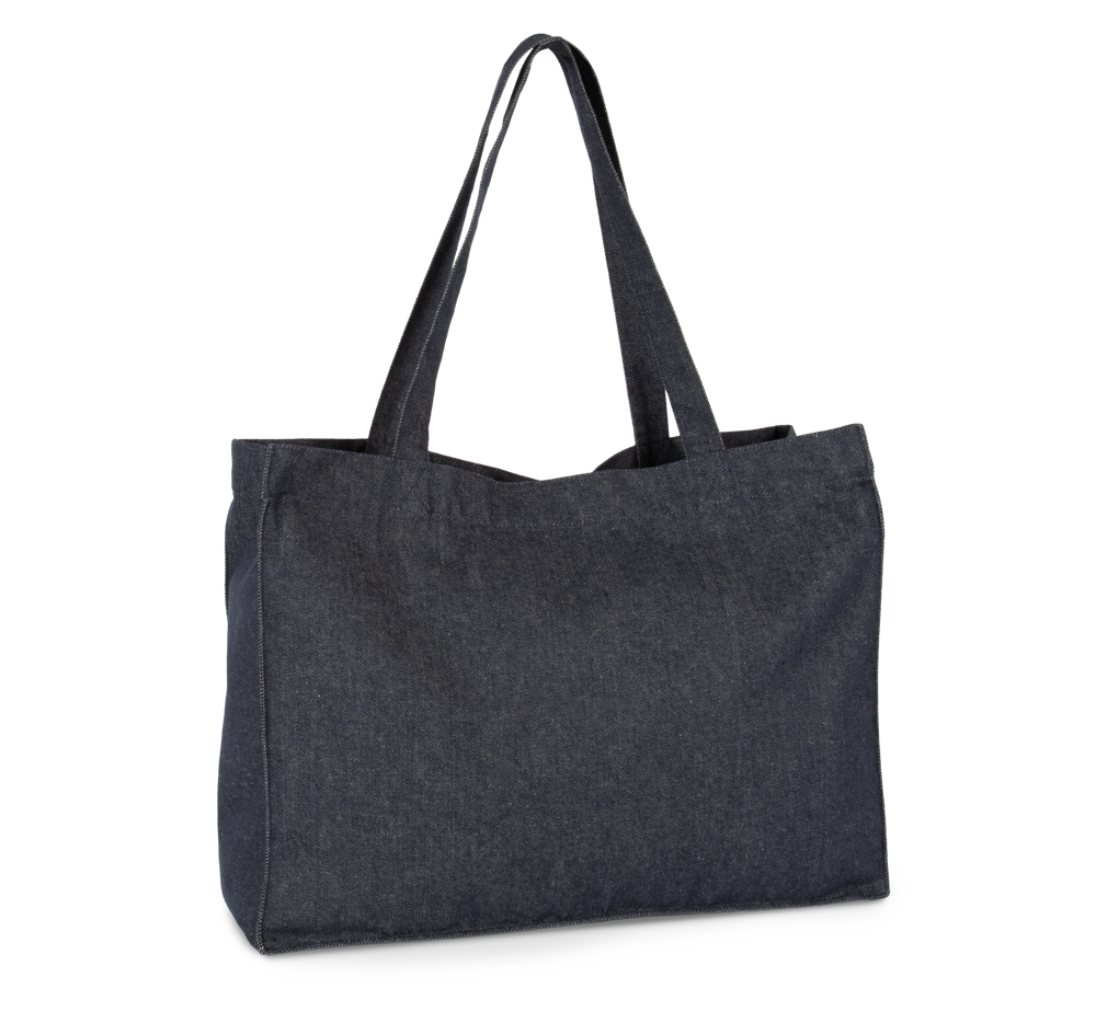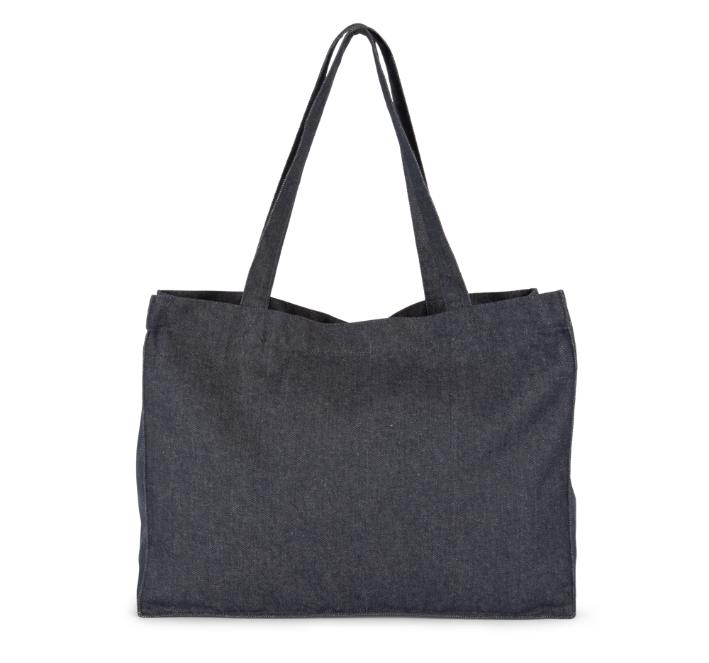 70% cotone riciclato / 28% poliestere riciclato / 2% altre fibre. I manici sono realizzati nello stesso materiale del corpo della borsa. Essendo riciclato, il tessuto non perde il colore.