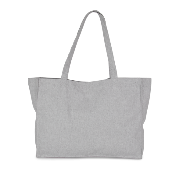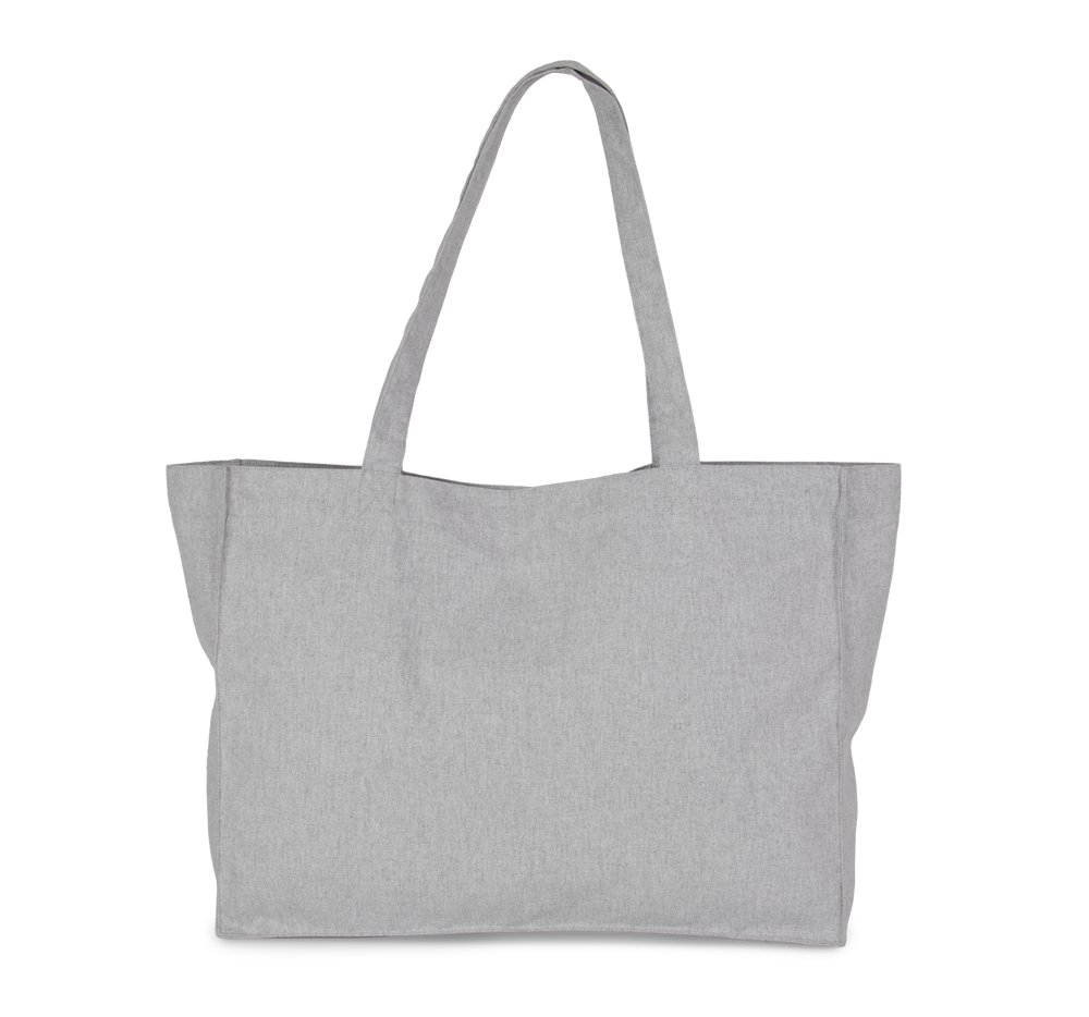 White Jhoot : 73% cotone riciclato/25% poliestere riciclato/2% altre fibre. Oxford Grey Jhoot : 60% cotone riciclato/38% poliestere riciclato/2% altre fibre. Black Jhoot : 70% cotone riciclato/28% poliestere riciclato/2% altre fibre. Navy Blue Jhoot : 70% cotone riciclato/30% poliestere riciclato. Shopper grande rettangolare con manici nello stesso tessuto della borsa. Questa borsa fa parte del progetto "K-loop". Grazie a questo progetto, Kimood chiude il cerchio dell'economia circolare nel senso letterale del termine. Il cotone utilizzato proviene, infatti, dagli scarti di lavorazione degli articoli in cotone del marchio Kariban e della linea KARIBAN BRANDS. Il poliestere aggiunto proviene dal riciclo di bottiglie di plastica PET. Durante il processo di riciclo, al filato vengono applicati dei traccianti, ovvero filamenti in viscosa e ceramica che fungono da impronte digitali uniche. I traccianti riflettono la luce in modo unico e contengono, quindi, un codice univoco e inviolabile. Questo ci consente di memorizzare in una blockchain tutte le informazioni relative ai processi a cui il filato è stato sottoposto in modo univoco. Grazie alla tecnologia dei traccianti Aware™ e alla relativa piattaforma blockchain, Kimood consente al consumatore finale di seguire l'intero processo produttivo. Ciò garantisce che il prodotto sia stato riciclato utilizzando i suoi stessi rifiuti, senza alcuna possibile alterazione del processo. Un'etichetta speciale, con un codice QR che consente l'accesso alla piattaforma Aware™ e l'autenticazione diretta delle certificazioni con un semplice smartphone.