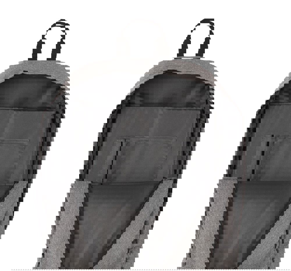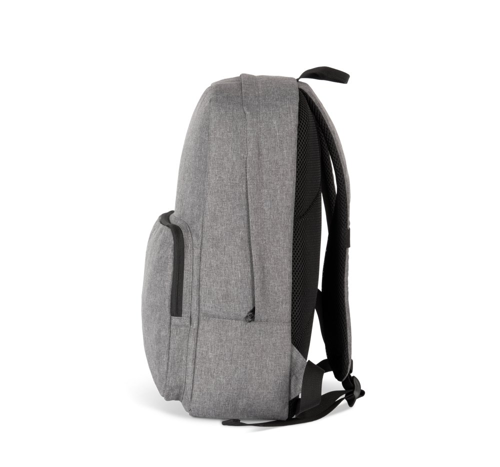 100% poliestere. Zaino da lavoro imbottito, 50% poliestere riciclato. Porta-computer nel compartimento principale compatibile fino a 15 pollici. Tasca frontale con ampia cerniera per facilitare la personalizzazione.