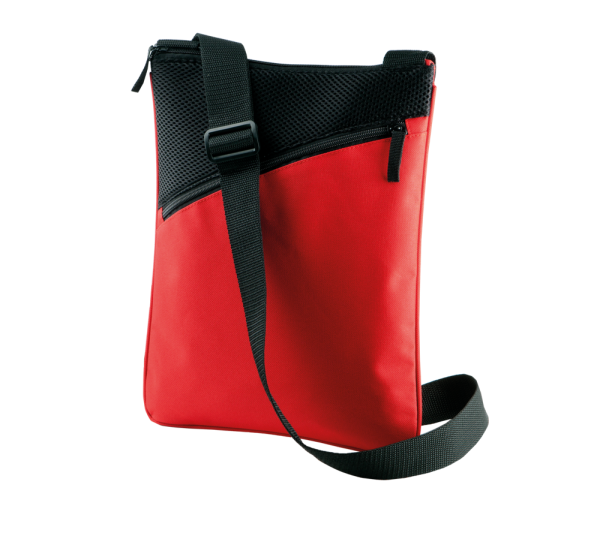 Tracollina verticale porta-tablet/documenti in poliestere 600D.Tasca frontale, tracolla regolabile.
