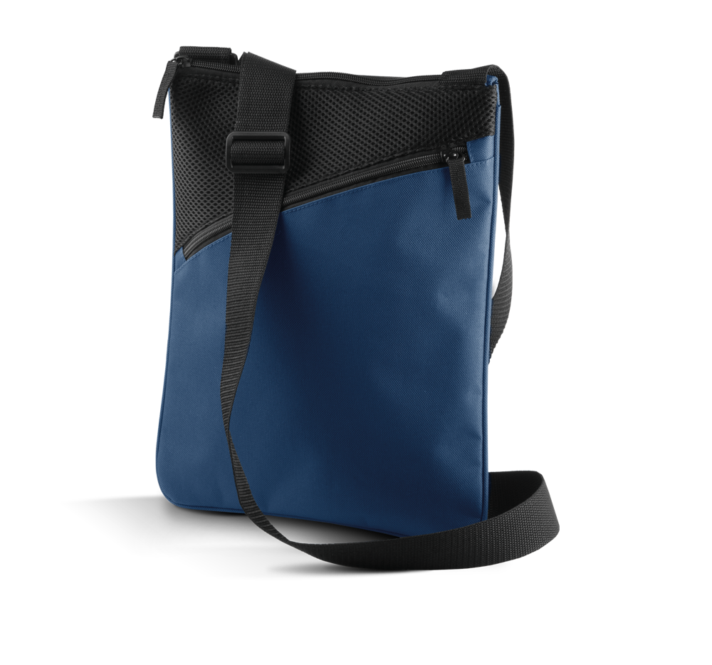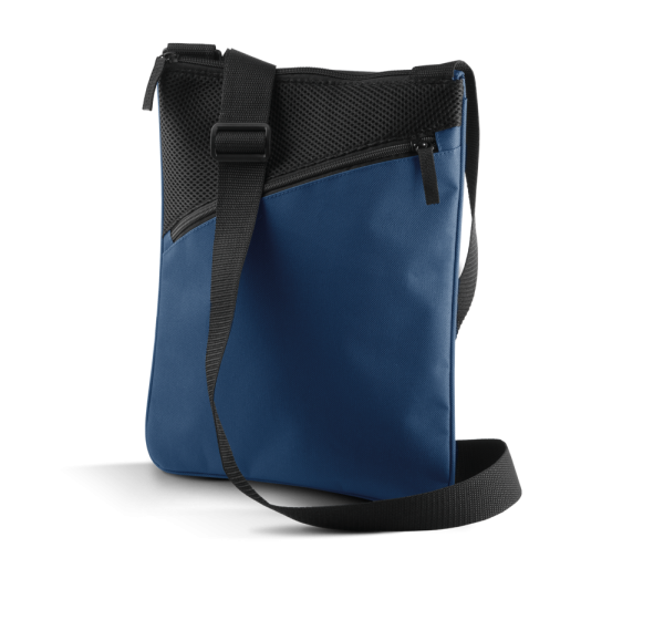 Tracollina verticale porta-tablet/documenti in poliestere 600D.Tasca frontale, tracolla regolabile.