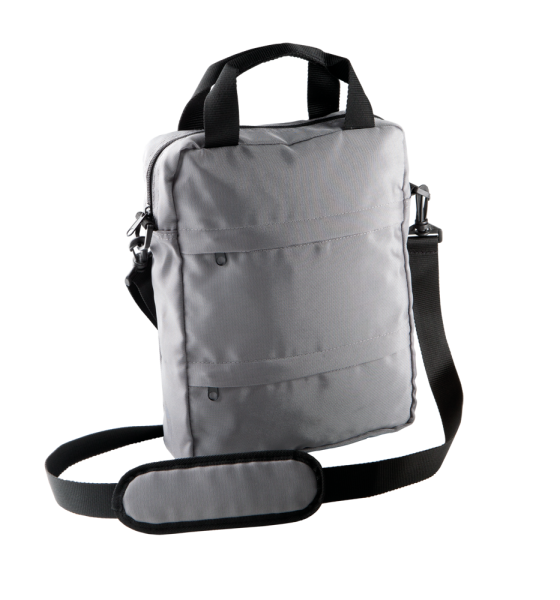 Tracollina verticale porta-tablet in poliestere 900D PU. 3 tasche frontali, tracolla removibile e regolabile.
