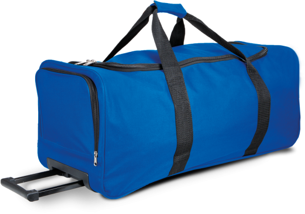 Trolley sportivo extra large in poliestere 600D. Grande apertura superiore, tasca laterale porta scarpe, webbing di 5 cm ad alta desità che rinforza il corpo borsa.