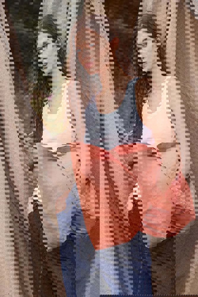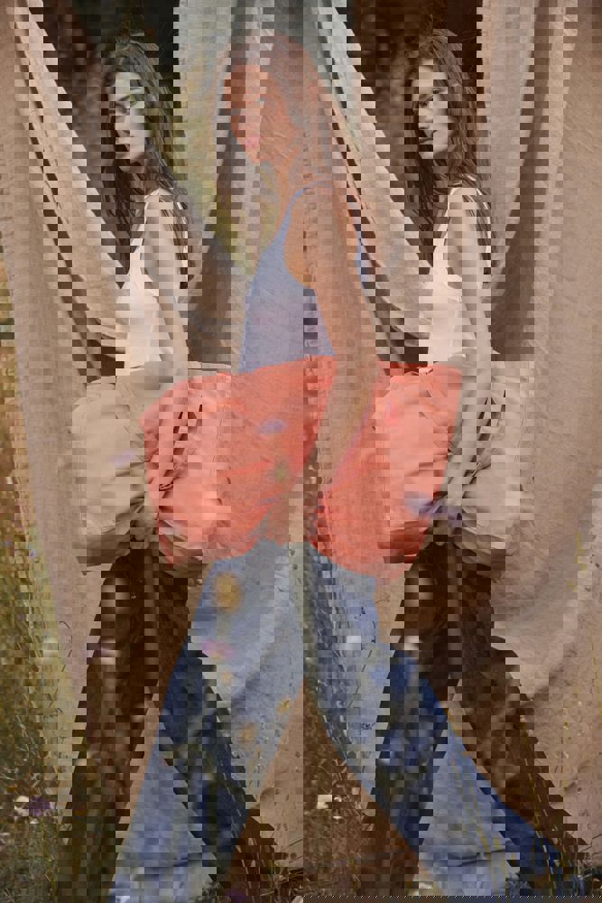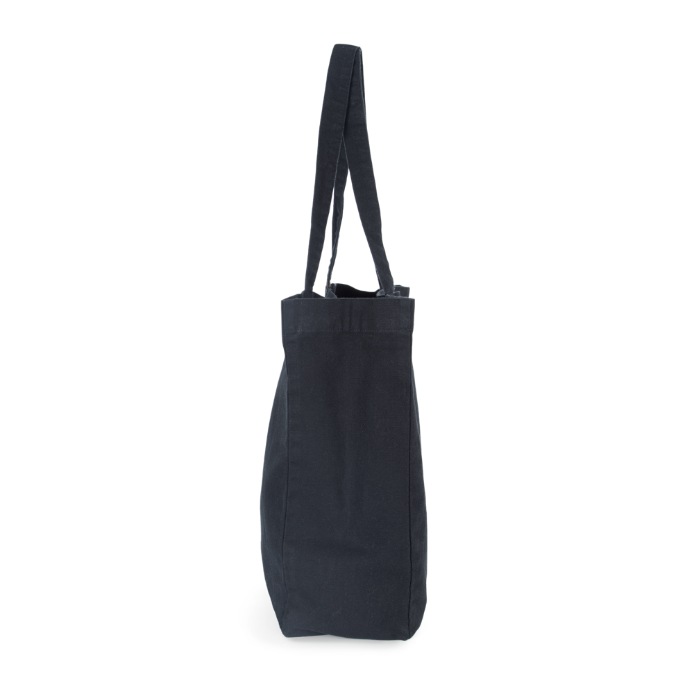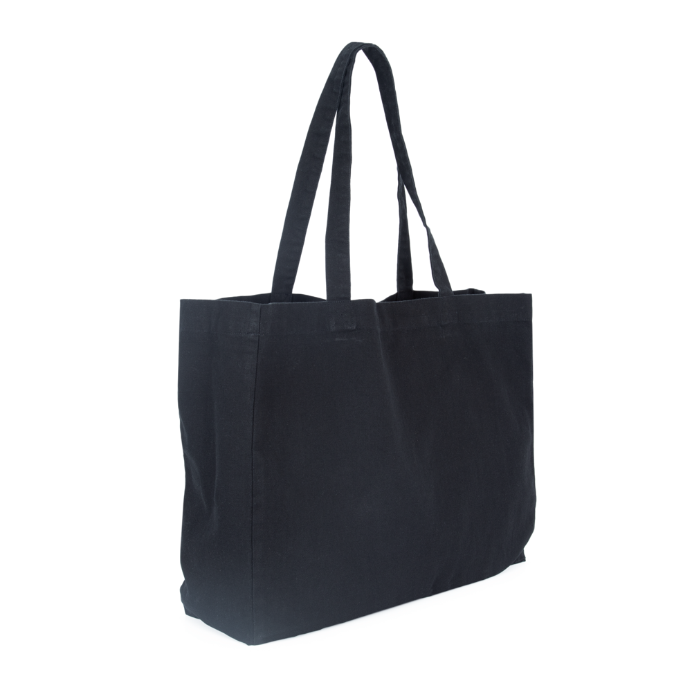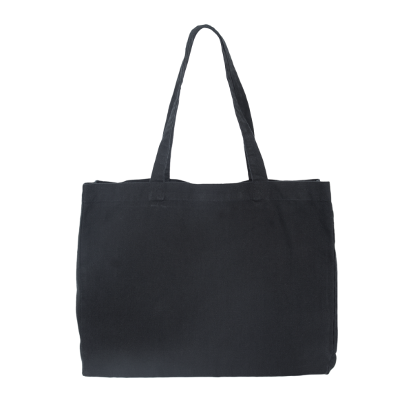 100% cotone. Grande borsa rettangolare con fondo piatto e ampio soffietto. Manici nello stesso materiale della borsa. Ampia capacità interna. I prodotti sbiaditi sono unici e potrebbero presentare leggere variazioni di colore.