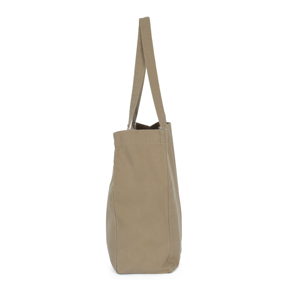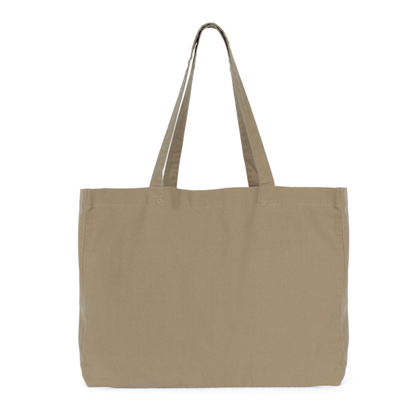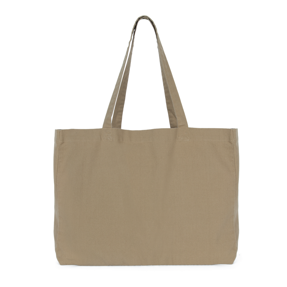 100% cotone. Grande borsa rettangolare con fondo piatto e ampio soffietto. Manici nello stesso materiale della borsa. Ampia capacità interna. I prodotti sbiaditi sono unici e potrebbero presentare leggere variazioni di colore.