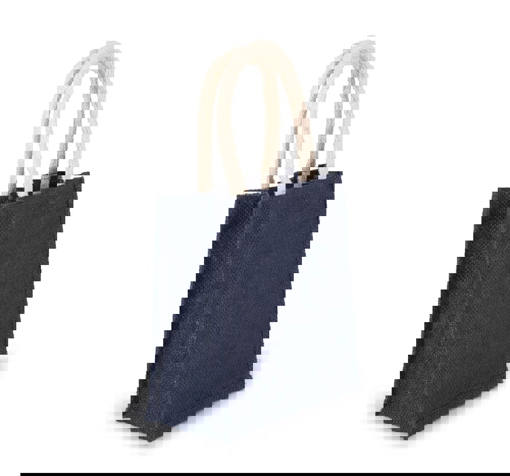Borsa stile shopper in tela di juta con manici in cotone. Modello piccolo.