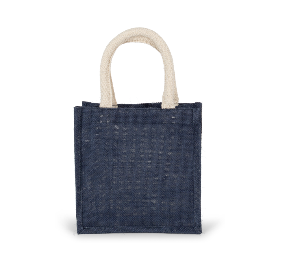 Borsa stile shopper in tela di juta con manici in cotone. Modello piccolo.