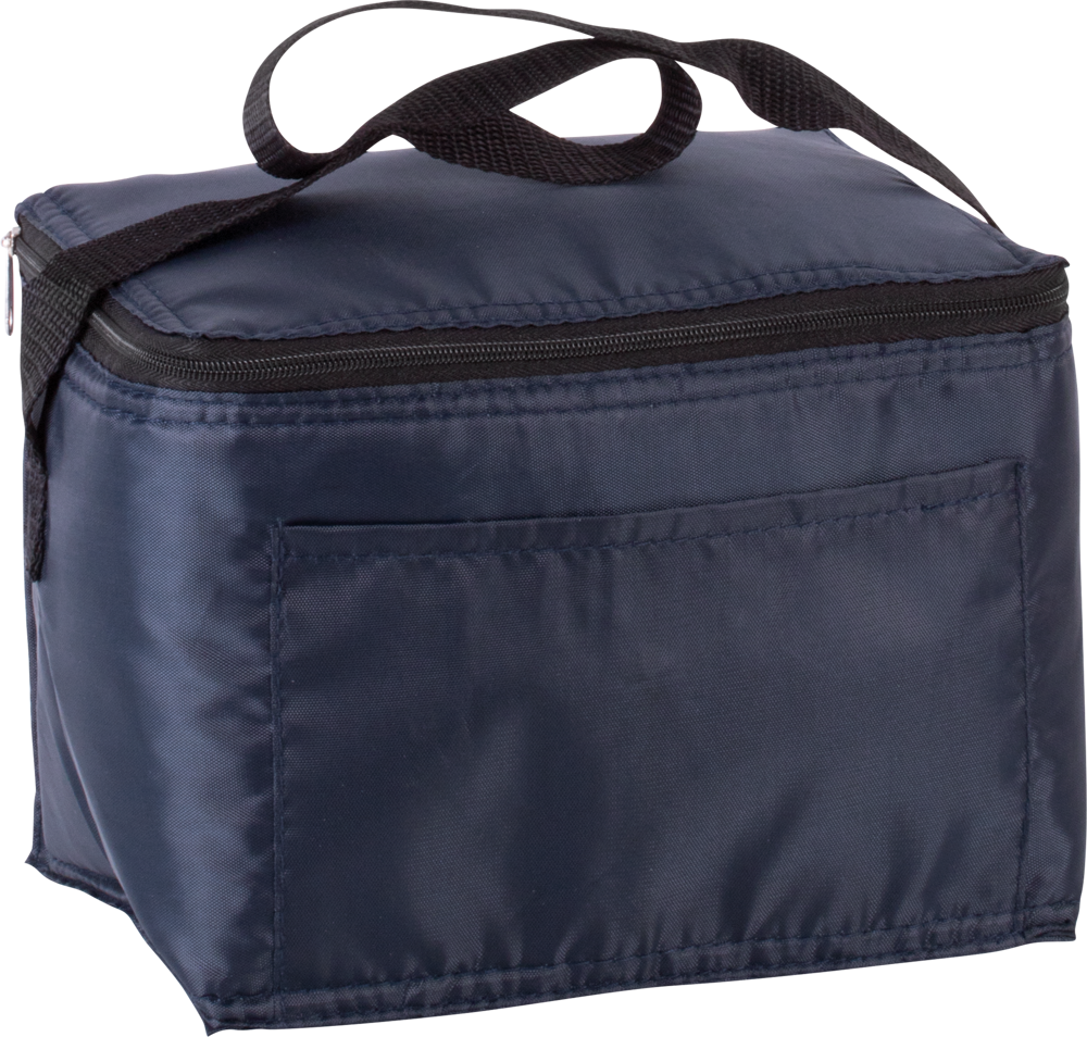 Borsa frigo in poliestere 210D + fodera in alluminio. Tasca sul davanti per facilitare la personalizzazione. Può contenere fino a 6 lattine.