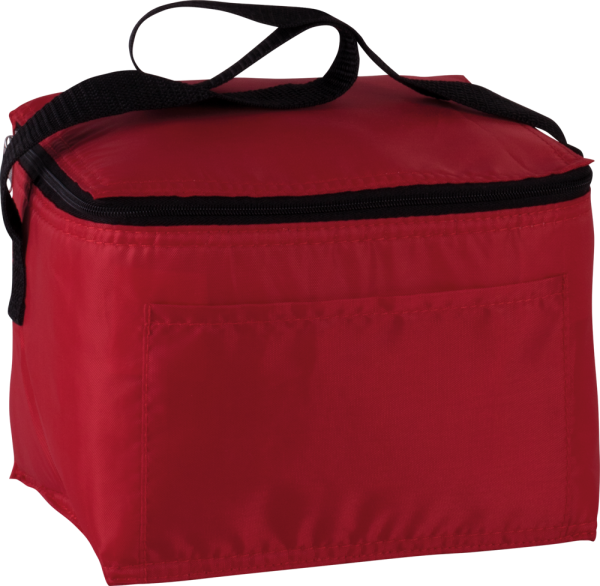 Borsa frigo in poliestere 210D + fodera in alluminio. Tasca sul davanti per facilitare la personalizzazione. Può contenere fino a 6 lattine.