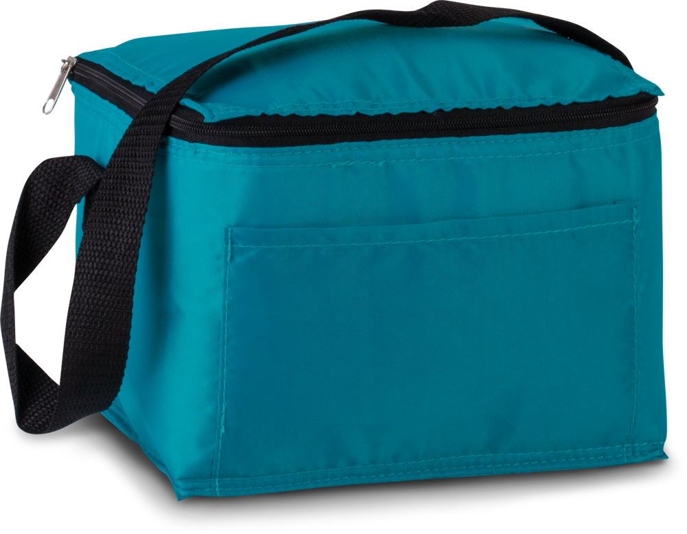 Borsa frigo in poliestere 210D + fodera in alluminio. Tasca sul davanti per facilitare la personalizzazione. Può contenere fino a 6 lattine.