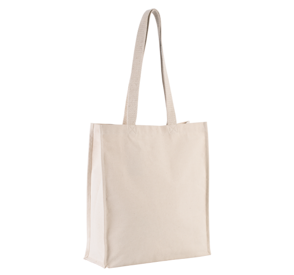 Borsa shopping in cotone canvas, a fondo largo con soffietto, manici lunghi da 70 cm in cotone colore Ecru.