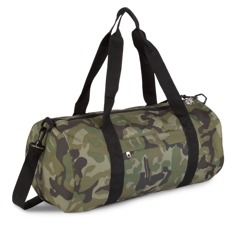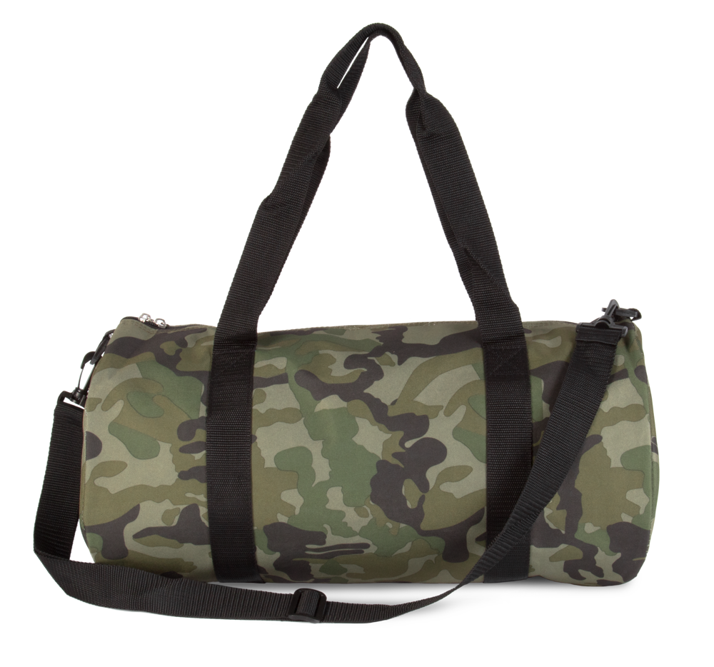 Borsa in poliestere 600D. Forma tubolare, con una tasca con zip sul lato, tracolla regolabile.