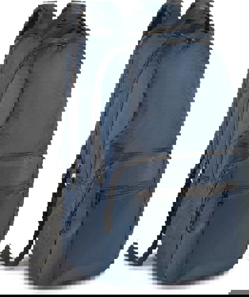 Zaino in poliestere 1.680D con dettagli a contrasto in poliestere jacquard. Scomparto imbottito adatto a contenere un computer portatile fino a 15". Scomparto porta-documenti centrale, spazio per tablet e tasca con zip interna. 2 tasche frontali con zip. Spallacci ergonomici e schienale imbottiti. Schienale con aggancio per trolley.