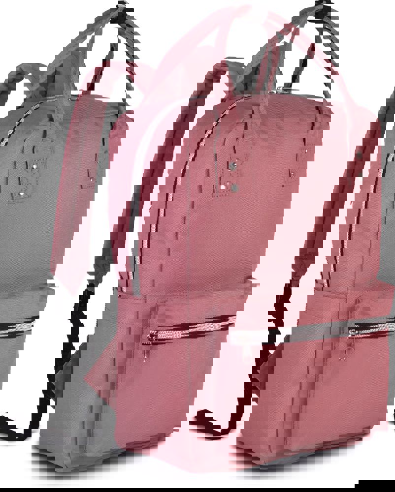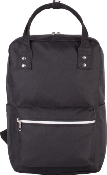 Zaino in poliestere 600D, utilizzabile anche come borsa grazie ai manici nella parte alta. Tasca interna imbottita, utilizzabile per contenere un tablet o un cellulare. Apertura con zip sullo schienale. Spallacci e schienale imbottiti. Tasca con zip sul davanti. Zip di colore a contrasto.
