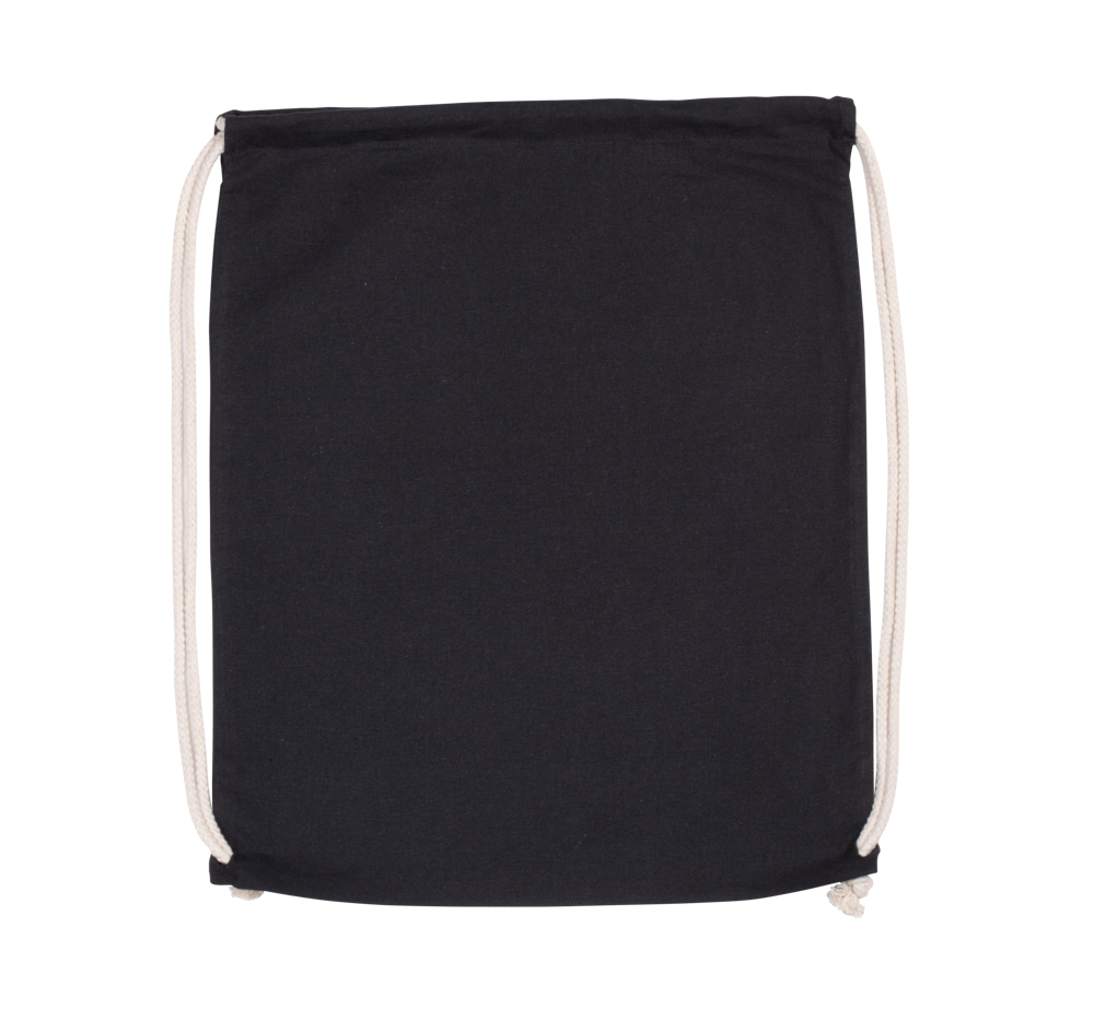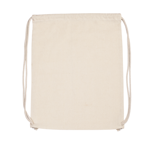 Zaino 100% cotone biologico. Chiusura con coulisse spessa.