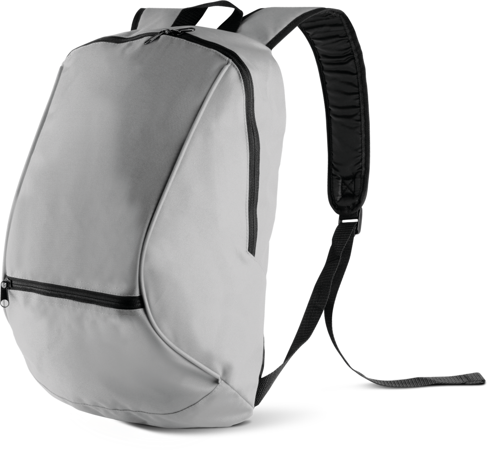 Zaino in Poliestere 600D . Scompartimento principale con tasca interna, zip rovesciate, tasca frontale con zip.