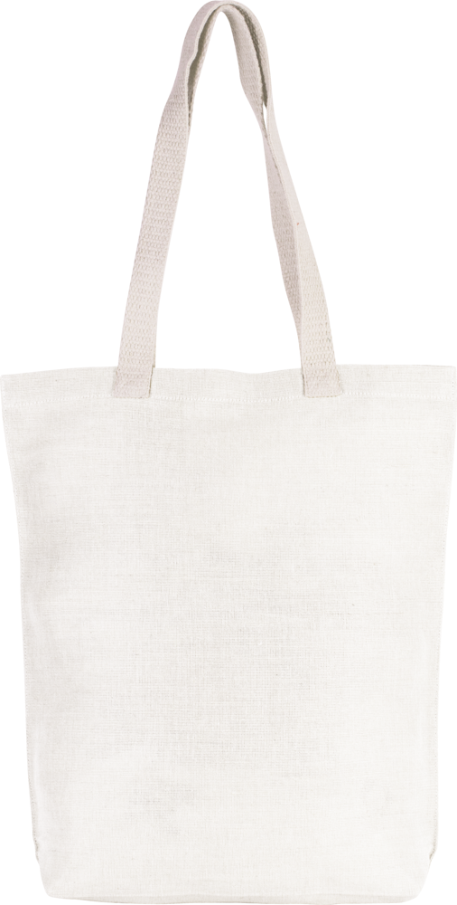 Shopper in tela di juta e cotone (juco), con soffietto e manici da 70 cm in cotone di colore Ecru.