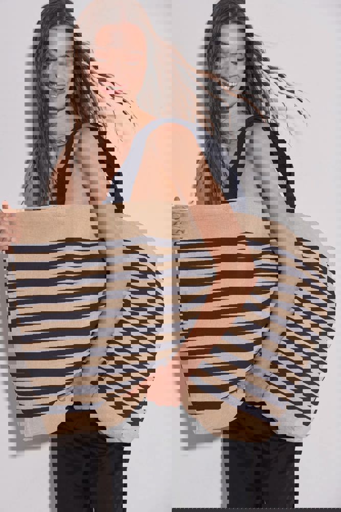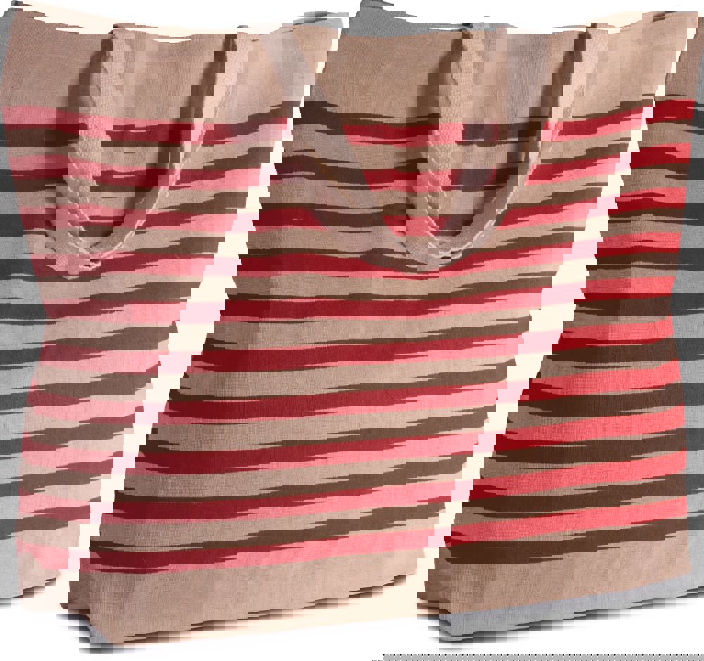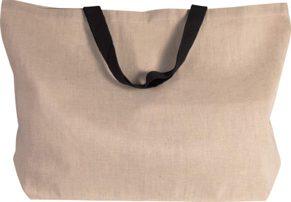 Borsone portatutto in tela di juta e cotone (juco), con soffietto e manici da 55 cm di colore a contrasto.