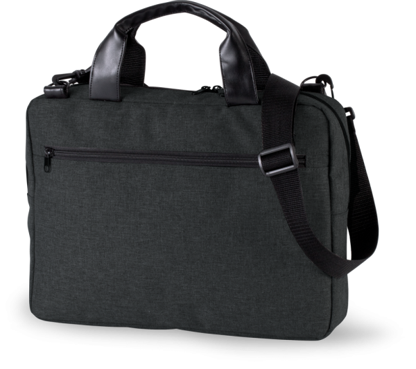 Borsa porta-documenti / porta-computer in poliestere 600D. Scomparto imbottito per contenere un computer portatile fino a 13 pollici, tasca anteriore con zip, manici di colore a contrasto. Tracolla removibile.