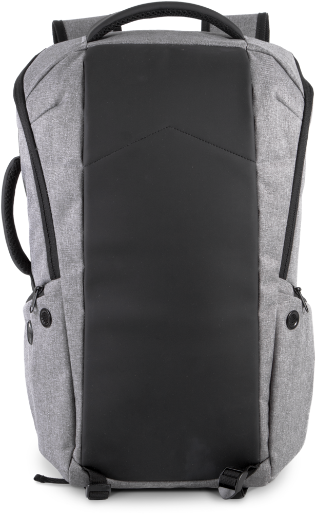 100% poliestere. Di cui il 50% di poliestere riciclato. Zaino antitaccheggio in poliestere 600D. Pannello anteriore con protezione anti-taglio. Zip sullo schienale con sistema di chiusura TSA. Tasca con zip ad accesso rapido sullo schienale. Spallacci e cinghia sul petto regolabili. 2 tasche con zip sugli spallacci. 2 cinghie di aggancio sotto lo zaino per trasportare pullover, giacche, ecc. 2 tasche laterali. 1 tasca di ricarica laterale con una porta USB sul lato esterno per collegare il dispositivo da ricaricare e una porta micro-USB (cavo incluso) sul lato interno per collegare il Power Bank. 1 tasca laterale con cavo antifurto a spirale per agganciare lo zaino ai piedi di un tavolo o di una sedia. Scomparto interno con spazio adatto a contenere computer portatile fino a 15". Scomparto imbottito per tablet adatto a modelli fino a 11". 2 tasche in rete. 2 taschine con zip staccabili per cavi e accessori. 2 tasche interne, di cui 1 per bottiglie/borracce e 1 per Power Bank.
