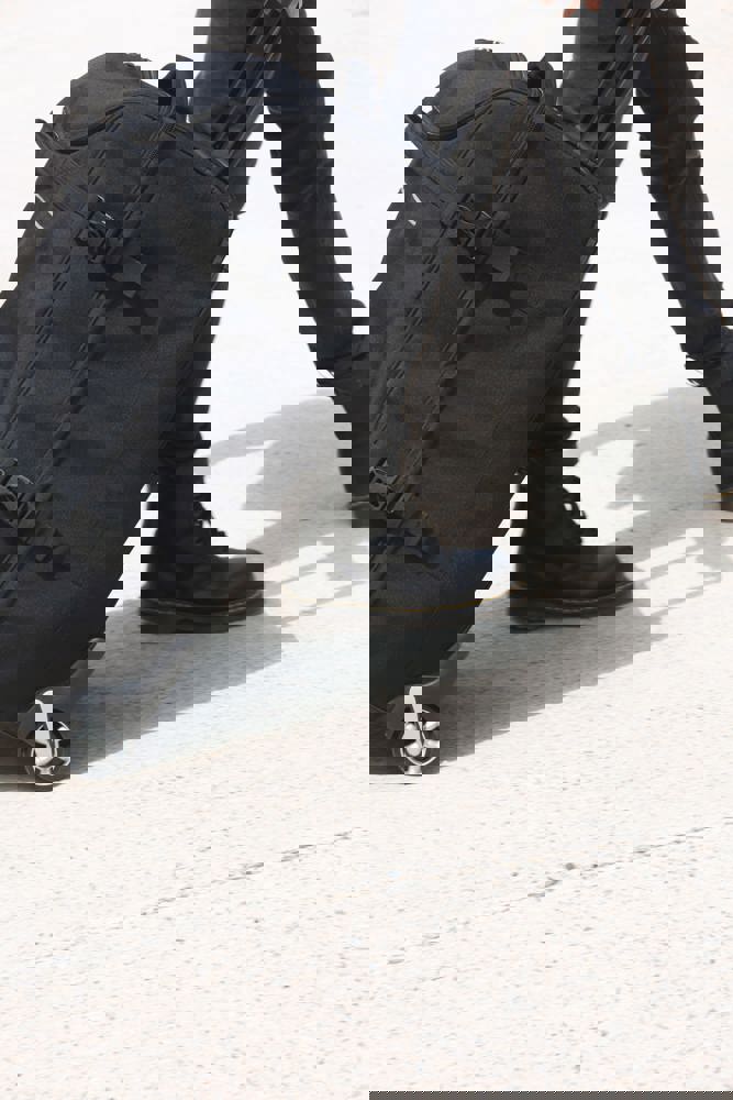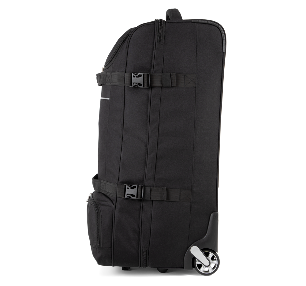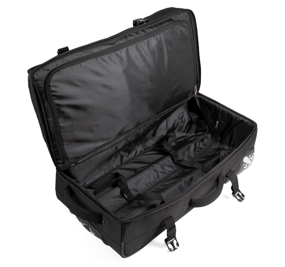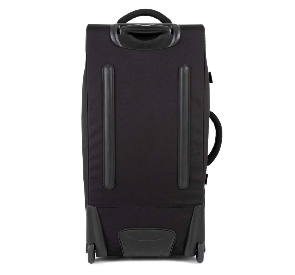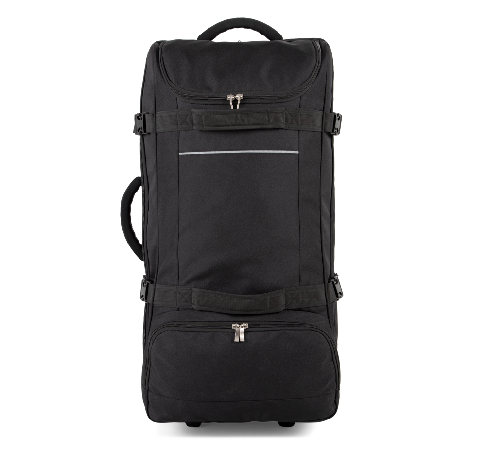 100% poliestere. Apertura a portafoglio. Apertura superiore con ampio scomparto che semplifica la personalizzazione. Cinghie di compressione laterali. Barre di rinforzo e protezione sul retro. Maniglie laterali superiori per una grande manovrabilità, anche a pieno carico.
