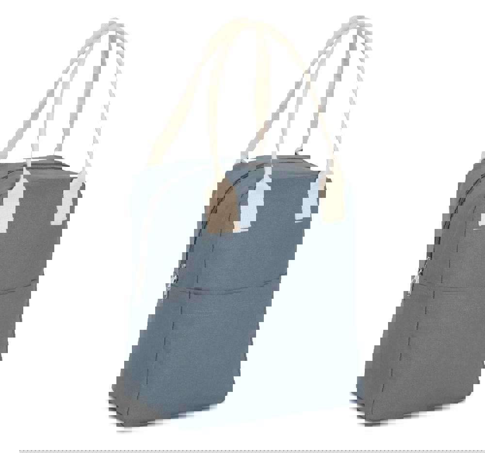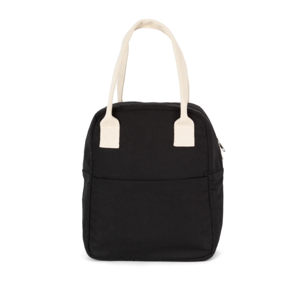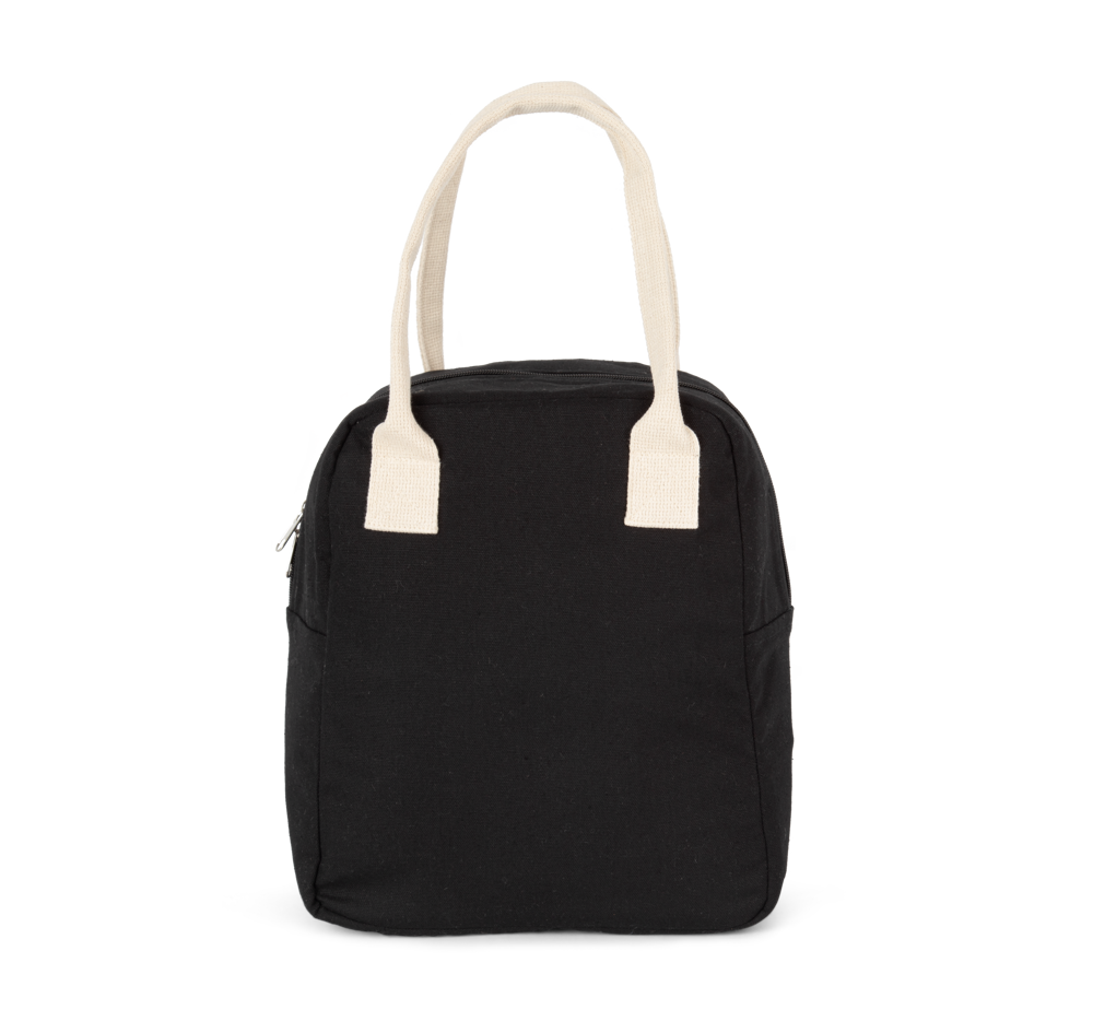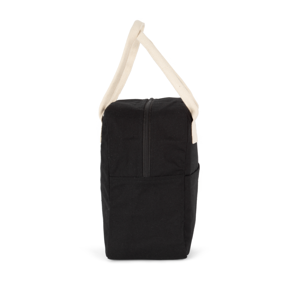 100 % cotone. Borsa termica in cotone canvas sul rivestimento esterno. Tasca esterna per facilitare la personalizzazione.Manici in cotone. Chiusura con zip.
