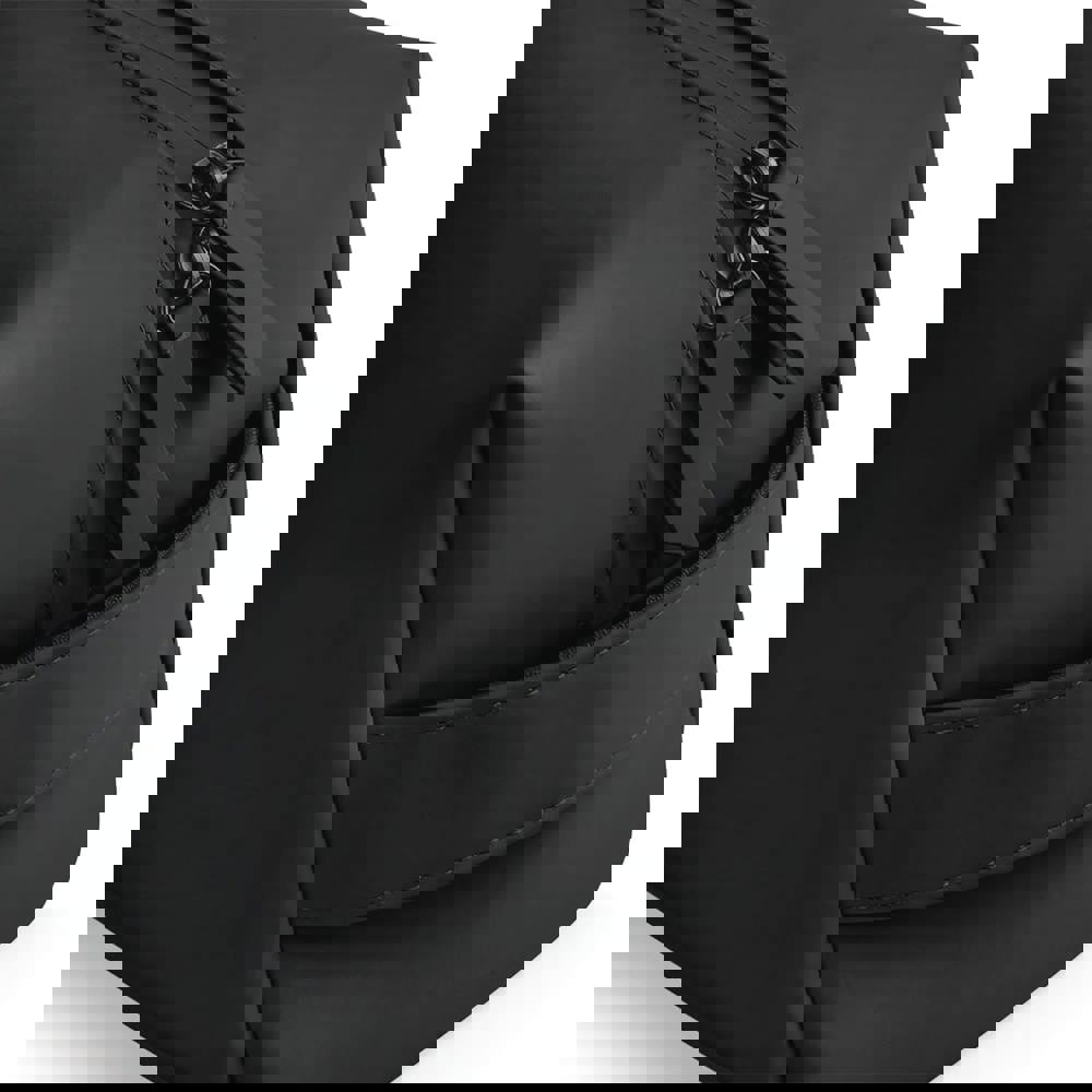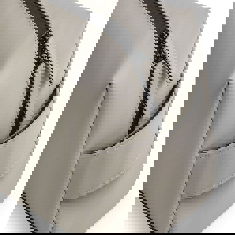 100% poliestere riciclato, rivestimento in poliuretano opaco senza PVC. Borsa porta scarpe in tessuto idrorepellente. Stile minimalista, multiuso. Scomparto principale con zip lunga, per facilitare l'accesso, e maniglia.