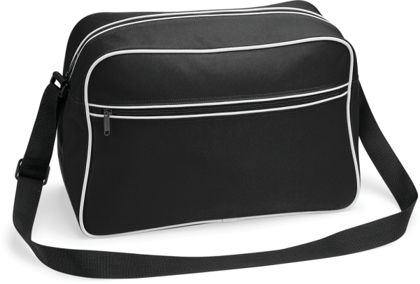 600D Poliestere. Tracolla regolabile. Tasca interna e tasca anteriore con cerniera. Bordino in colore in contrasto.