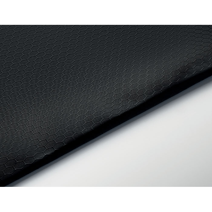 Drawstring bag in 420D RPET polyester with vertical side zip pocket and RPET 210D lining. Features durable cords on both sides. Capacity 4.5L, max load 5 kg.