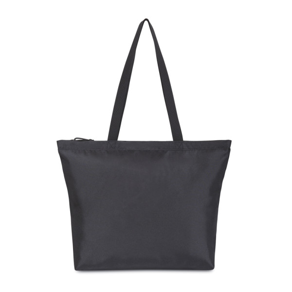 A modern and sustainable update to a classic tote bag using recycled fabric and webbing made from plastic bottles. Zippered opening to large main compartment. Interior sleeve for storing your hydration bottle. Includes AWARE™ Virtual ID & Product passport, which delivers an indisputable way to track and validate textile composition impact from origin to consumer. To access, scan the QR code located inside the product or visit wearaware.co to learn more. Available across both sides of the Atlantic. This item is also offered by Gemline for customers in the US and Canada.