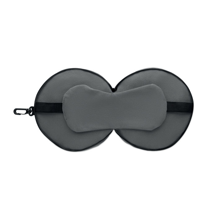 2 in 1 travel pillow with attached eye mask.