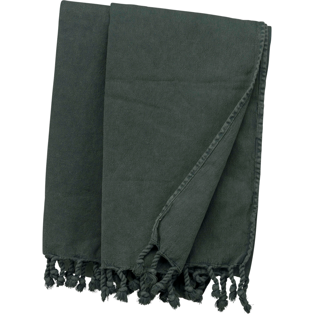100% cotone. Dimensioni: 170 cm x 90 cm. Aspetto slavato. Frange intrecciate con un nodo. Il prodotto è stato sottoposto a un trattamento speciale che gli conferisce un aspetto volutamente invecchiato. Tale metodo artigianale comporta variazioni di colore da un prodotto all'altro, rendendo ogni pezzo unico e irripetibile.