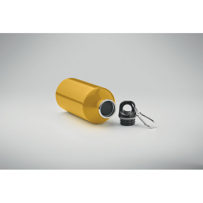 Single layer bottle in recycled stainless steel (90% recycled stainless steel and 10% stainless steel) with carabiner. 500 ml. Sublimation print available on white item only. Leak free. As this is a single walled mug, heat transfer can still occur.