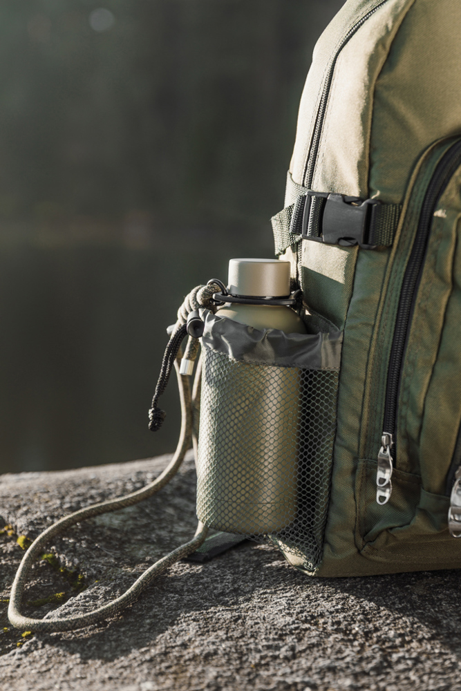 Ready for every trail, this stainless steel bottle is built for an active lifestyle. This double walled bottle is designed to keep drinks refreshingly cold for up to 12 hours and warm for up to 6 hours. It comes with a practical removable and adjustable shoulder strap that makes carrying effortless whether you’re in city on the go, hiking uphill, or heading out for a day of adventure. Not dishwasher or microwave safe, only handwash. Capacity 400 ML. Certified by RCS (Recycled Claim Standard), RCS certification guarantees that the entire supply chain of recycled materials is certified. The total recycled content is based on the overall product weight. This product contains 72% RCS certified recycled stainless steel.