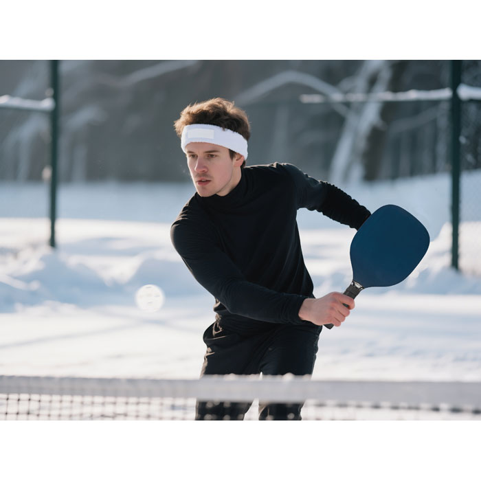 Headband in polycotton (79%cotton/13% elastane/8%polyester) with cotton patch for printing area.