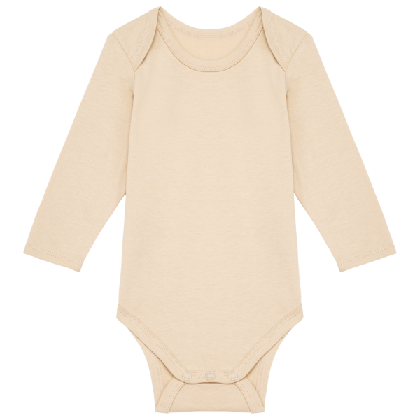 100% cotone biologico. Cotone pettinato. Tessuto jersey. Lavaggio agli enzimi. Scollo all'americana con finitura a sbieco. Chiusura nella parte bassa del body con 3 automatici e finitura con sbieco. Doppia impuntura a fondo manica. Nessuna etichetta con il nome della marca; solo una piccola etichetta con l'indicazione della taglia per semplificare la personalizzazione.