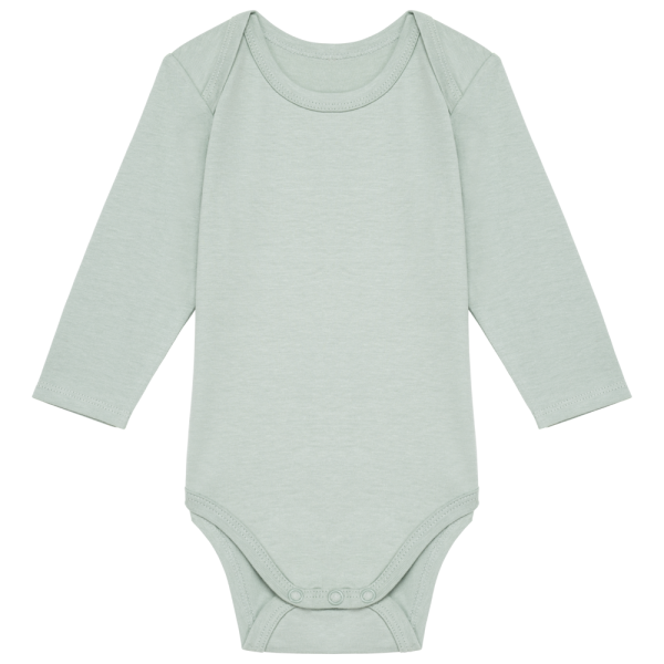 100% cotone biologico. Cotone pettinato. Tessuto jersey. Lavaggio agli enzimi. Scollo all'americana con finitura a sbieco. Chiusura nella parte bassa del body con 3 automatici e finitura con sbieco. Doppia impuntura a fondo manica. Nessuna etichetta con il nome della marca; solo una piccola etichetta con l'indicazione della taglia per semplificare la personalizzazione.