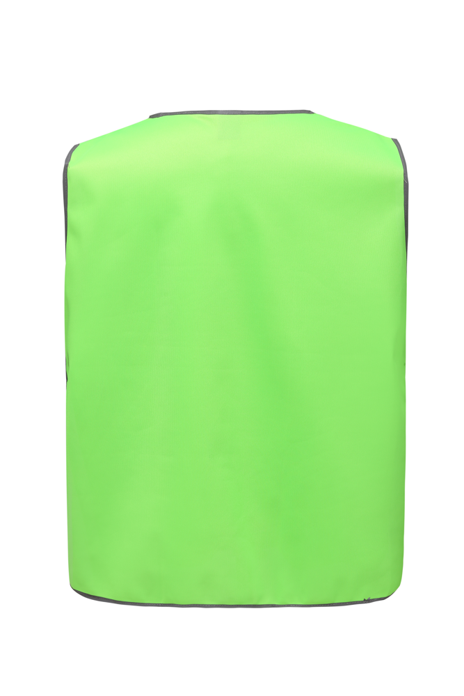 100% poliestere. Bordo riflettente. Elastico e fascia in Velcro di 10 cm su entrambi i lati. Ampia area per decorazione sul lato anteriore e su quello posteriore.