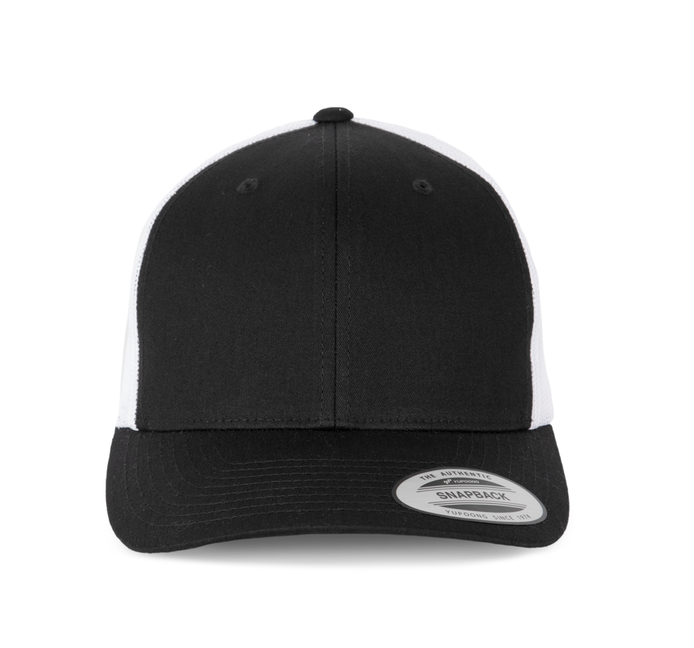 60% cotone / 40% poliestere. 6 pannelli. Modello Trucker rétro di alta qualità con visiera a profilo medio e pannelli anteriori rigidi dello stesso colore. Chiusura regolabile in plastica.