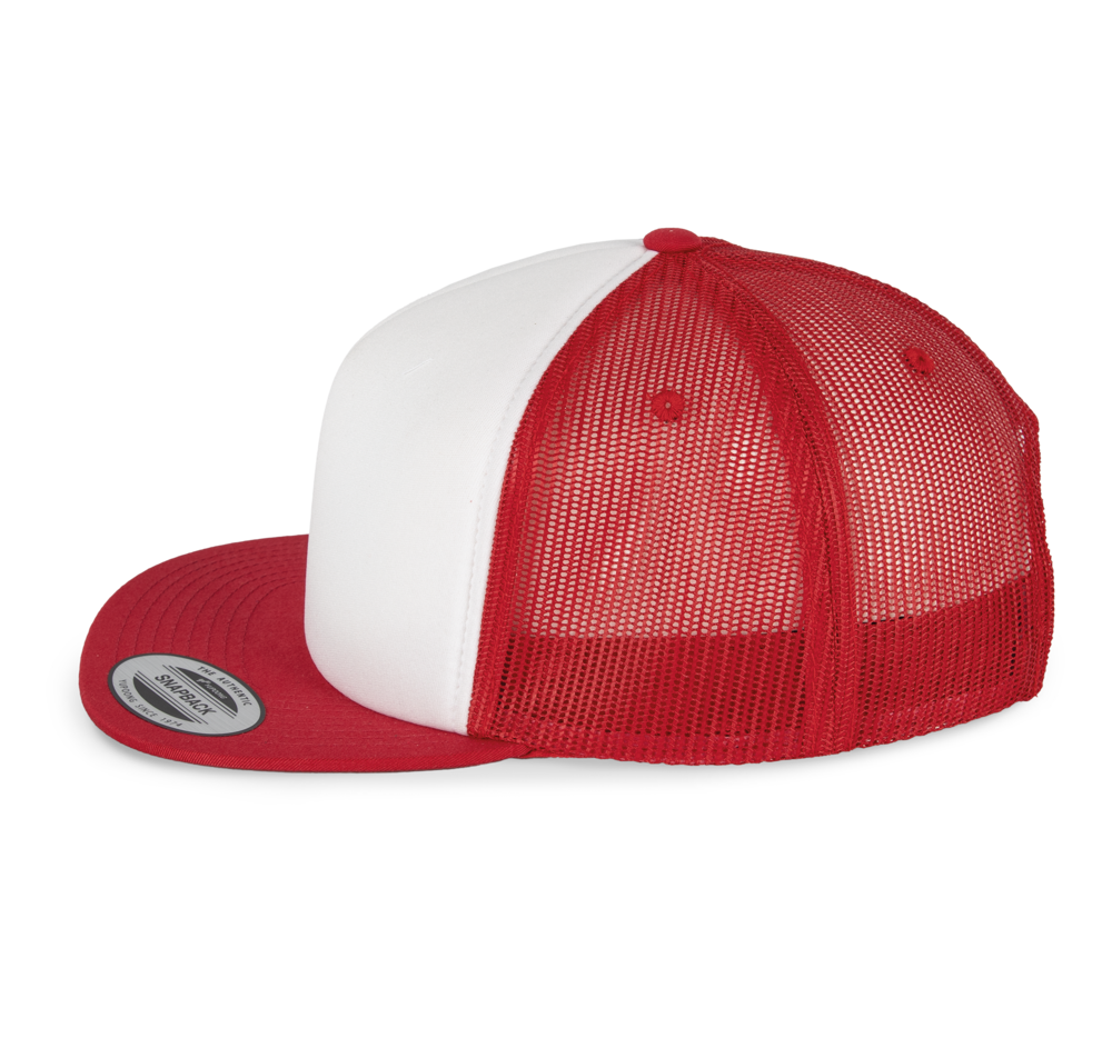 60% cotone / 40% poliestere. 5 pannelli. Modello Trucker classico con schiuma di alta qualità. Spalmatura spugnosa sul pannello anteriore (sp. 6 mm), ideale per stampa o ricamo. Chiusura regolabile in plastica.