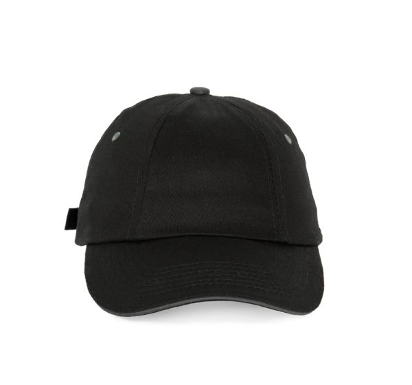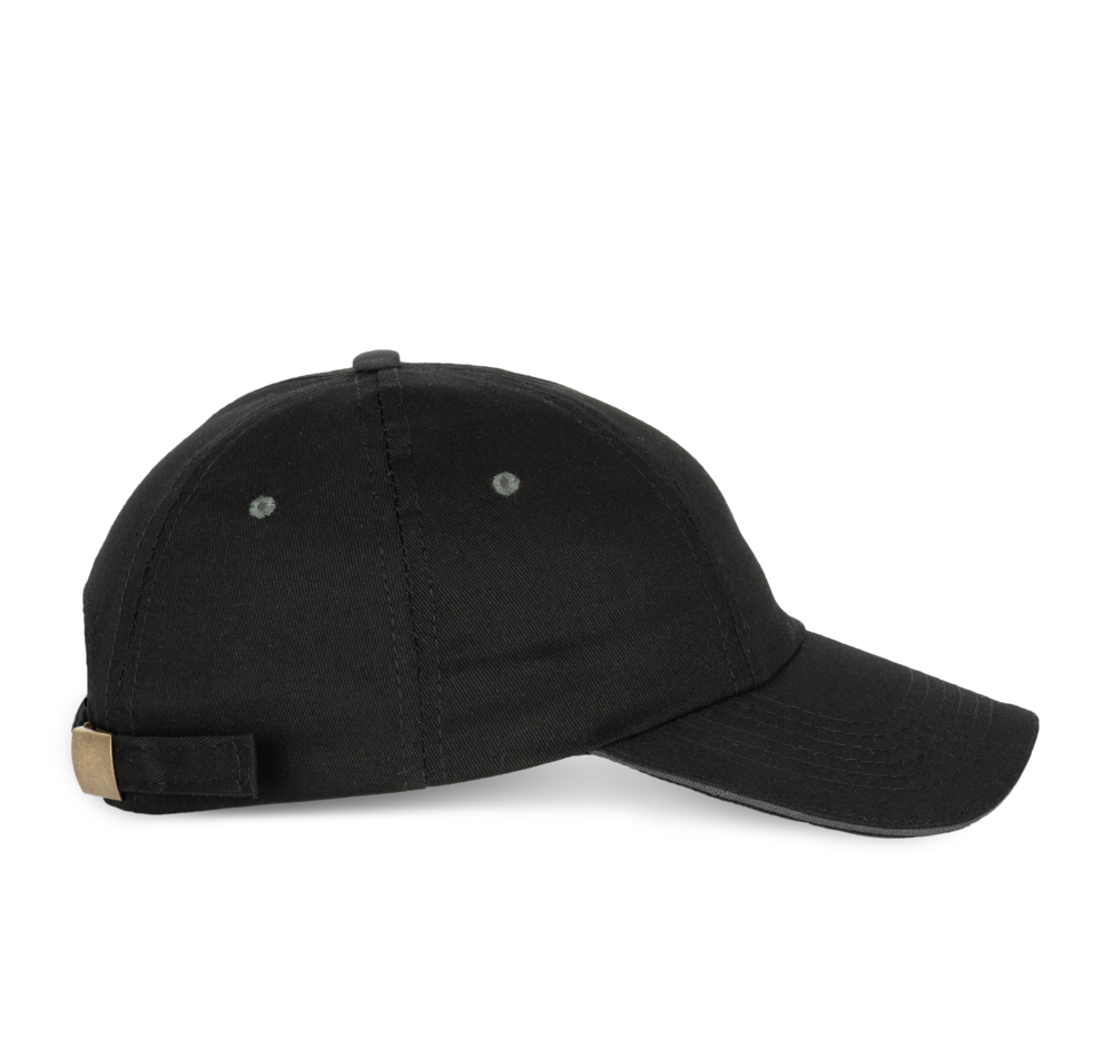 100% cotone twill. Pannello centrale per facilitare la personalizzazione. Bordo visiera e rifiniture in contrasto. Taglia regolabile con chiusura metallica.