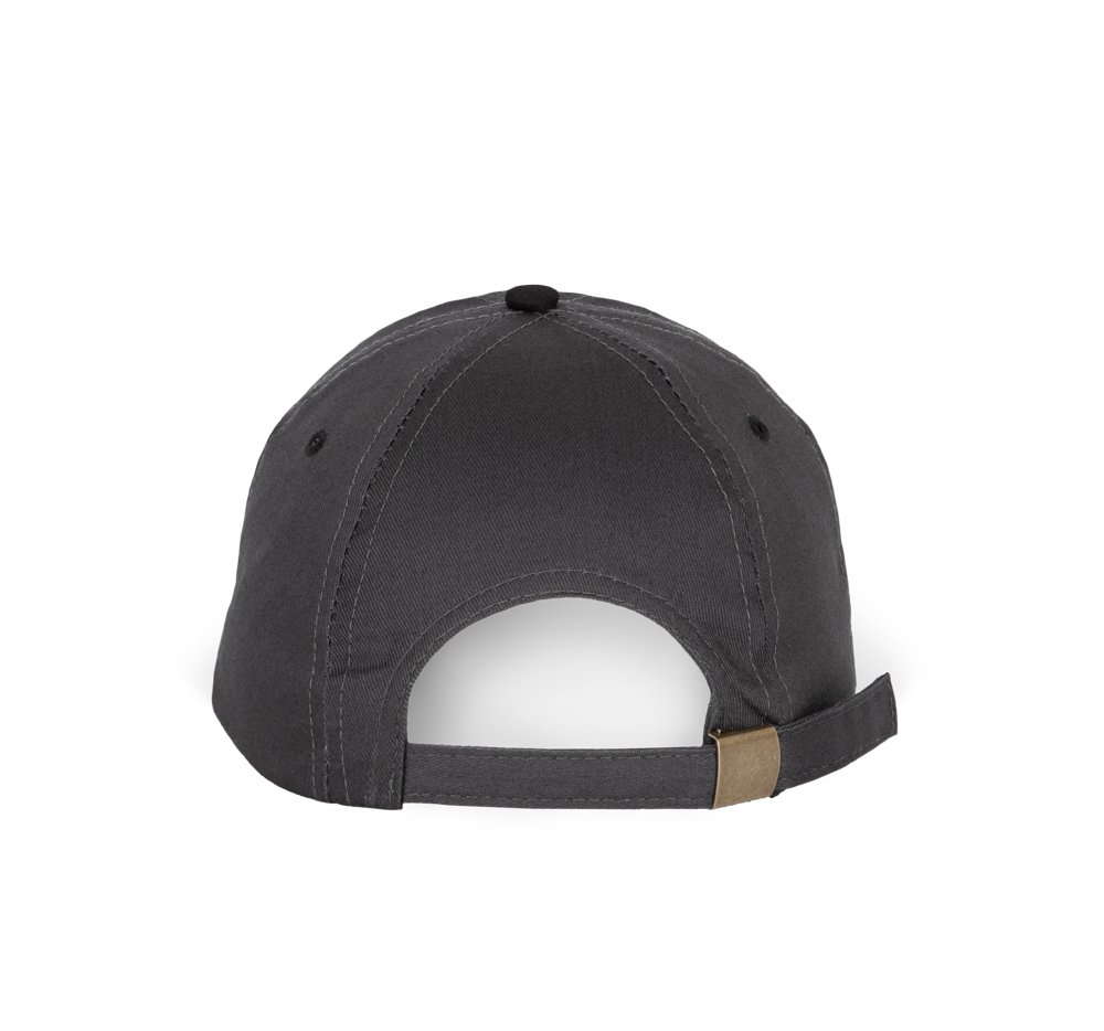 100% cotone twill. Pannello centrale per facilitare la personalizzazione. Bordo visiera e rifiniture in contrasto. Taglia regolabile con chiusura metallica.