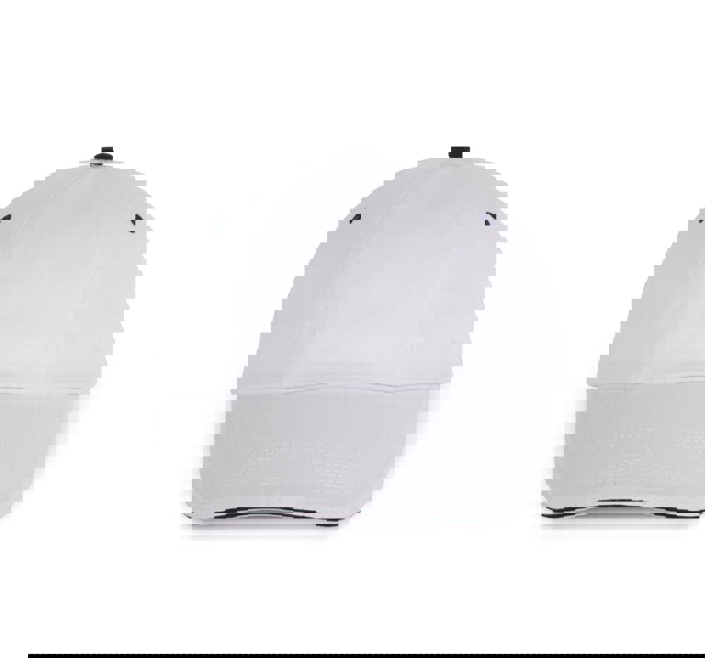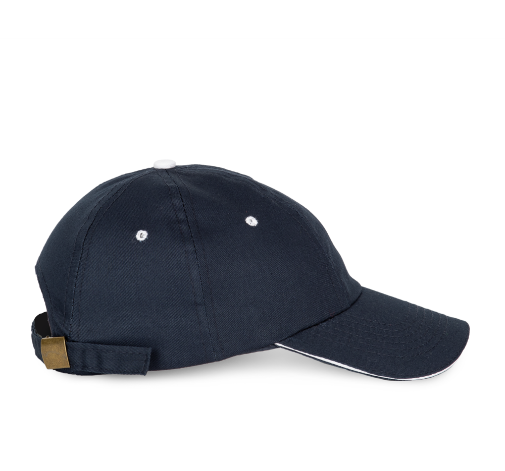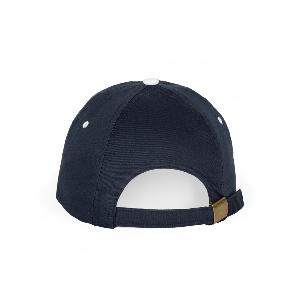 100% cotone twill. Pannello centrale per facilitare la personalizzazione. Bordo visiera e rifiniture in contrasto. Taglia regolabile con chiusura metallica.
