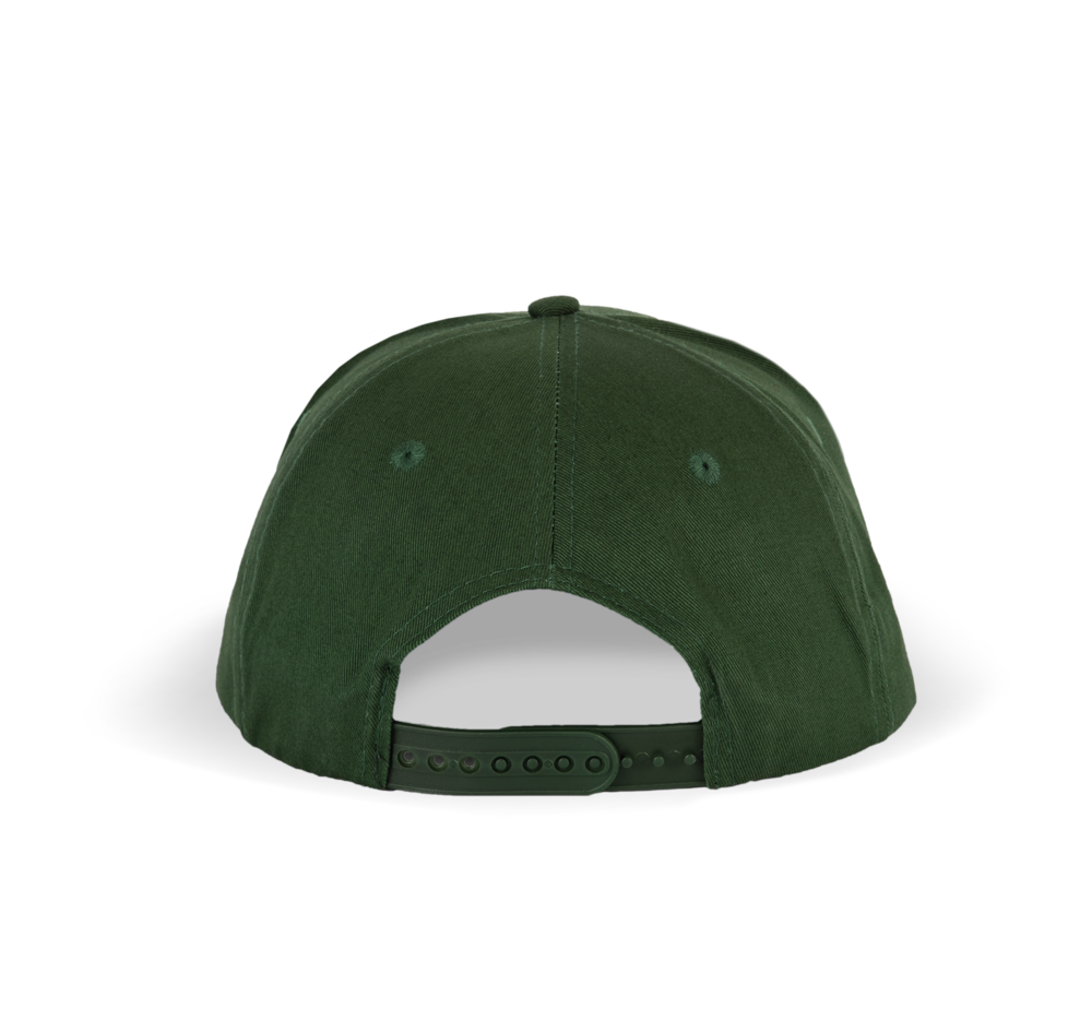 100% twill di cotone. 5 pannelli. Visiera piatta. Chiusura regolabile in plastica.