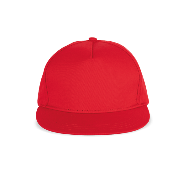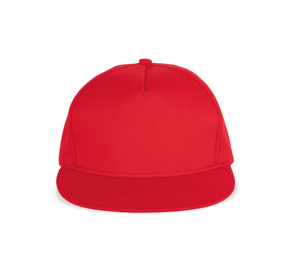 100% twill di cotone. 5 pannelli. Visiera piatta. Chiusura regolabile in plastica.